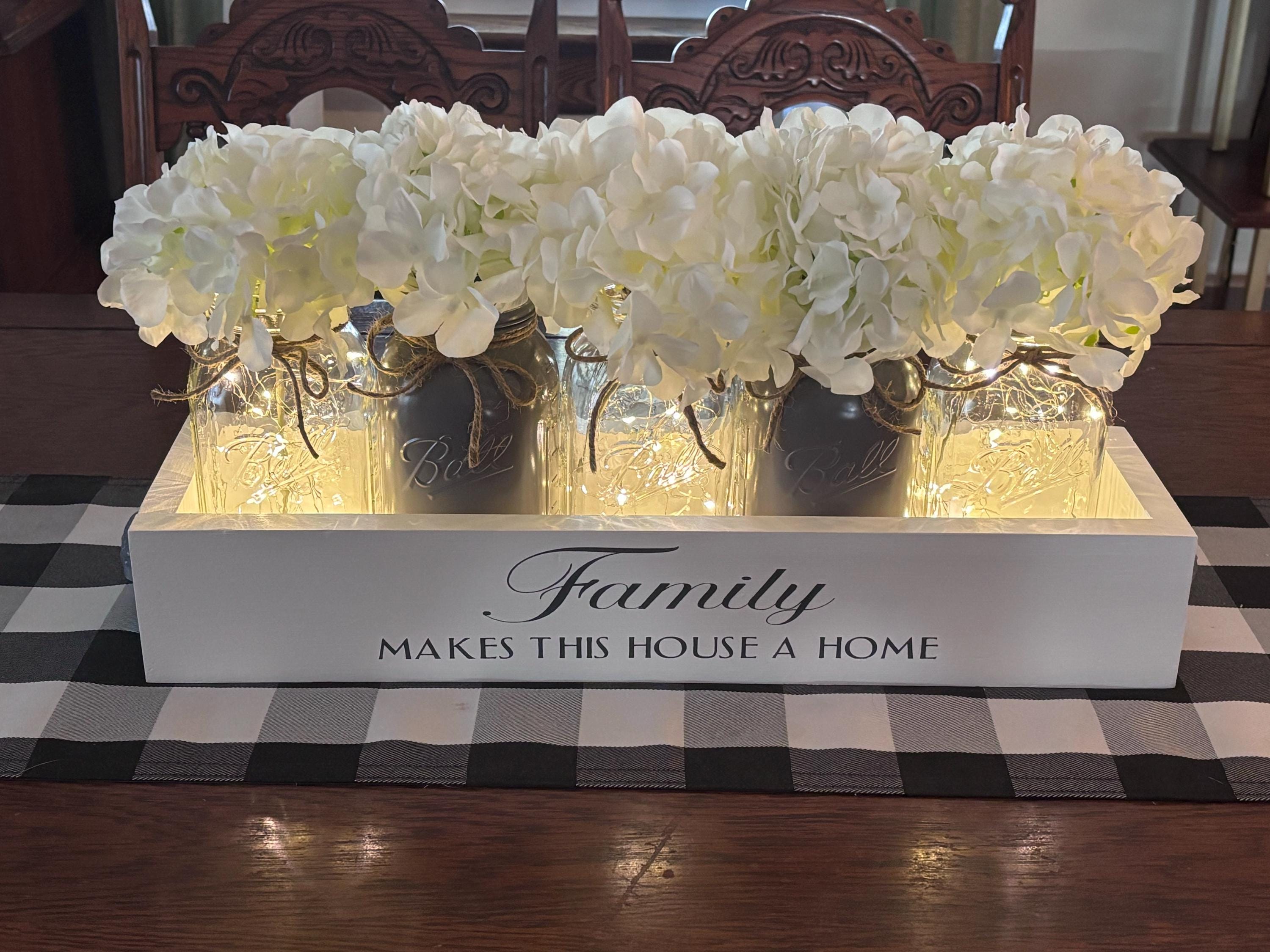 Modern Farmhouse Lit Mason Jar Centerpiece for Kitchen Island Table Decor
