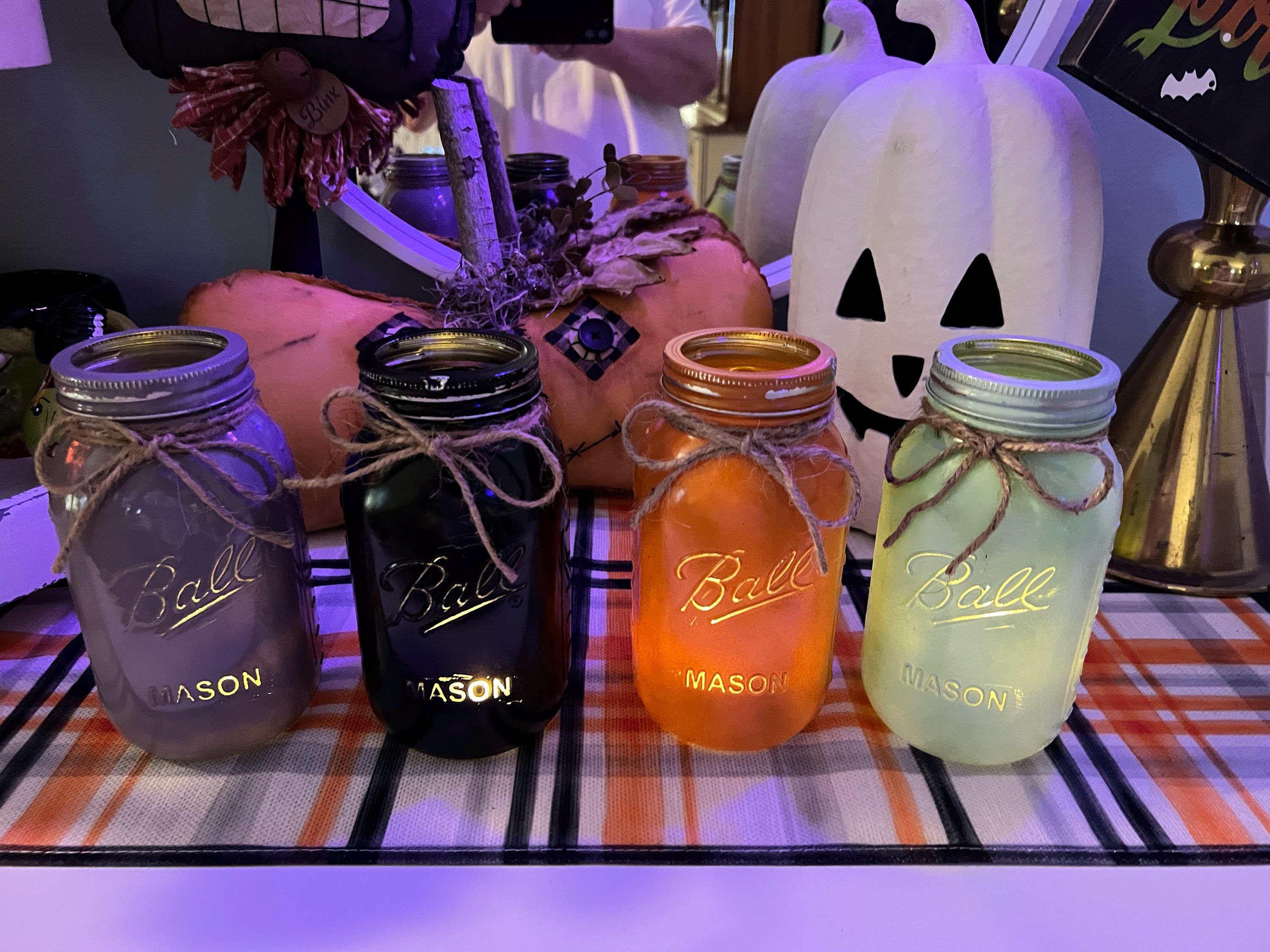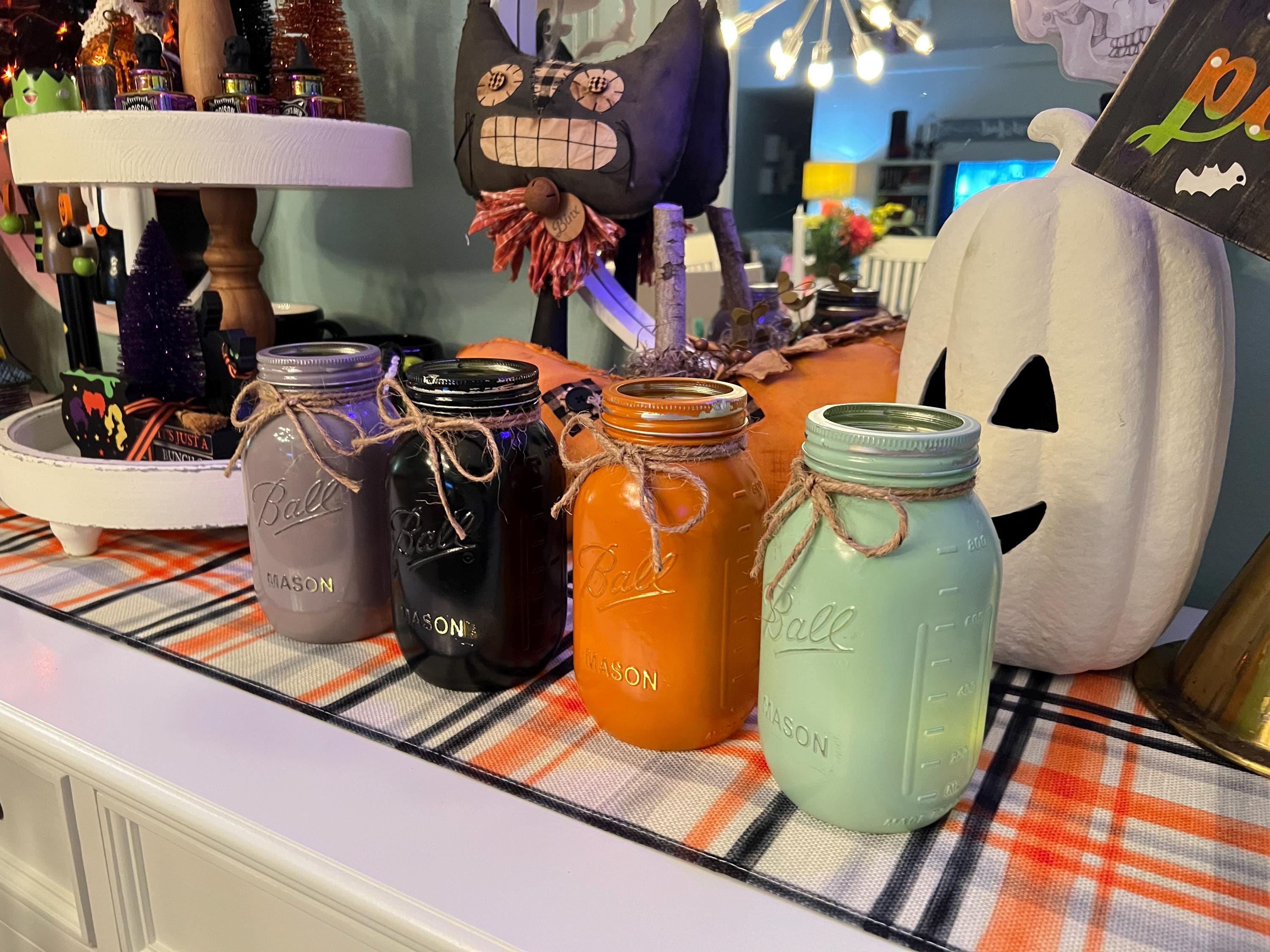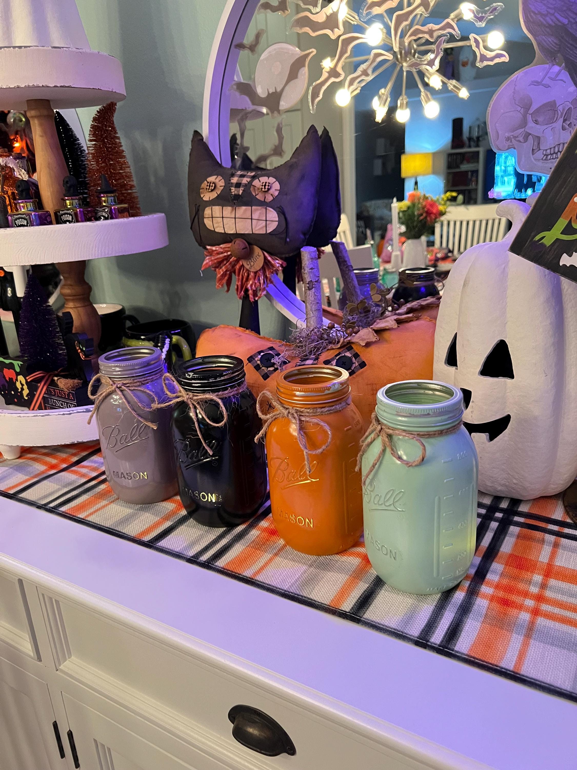 Love the Custom Hand Painted Colored Jars! Perfect for my Holiday Decor!!! The Seller, without my asking, knew I wanted the jars for Halloween! The colors are what gave it away!! LOL. She contacted me after I purchased them and said she would rush the order so they would be here in time for Halloween! Now I call that above and beyond Customer Service! AWESOME Communication! Best Pricing for these jars on the internet! I will most definitely be back to shop again! Well packed for safe shipping! Thank you for a GREAT Buying Experience on ETSY!