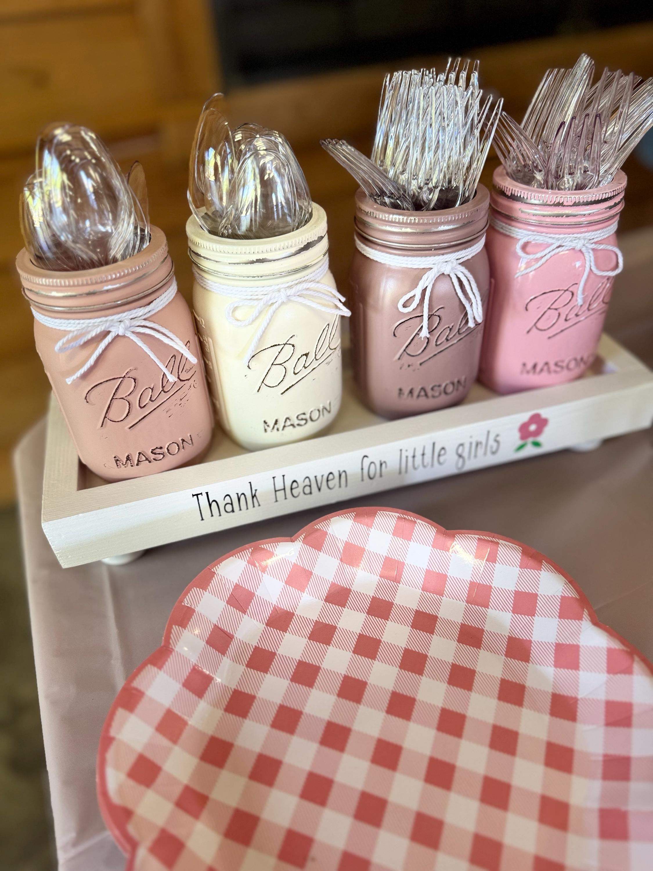 Use this utensil holder for the baby shower and then fill it with flowers for the baby's room decor...a WIN-WIN!! How cute will this look on the buffet table at the shower to welcome the sweet little girl into the world.....and when the party ends, the mom-to-be can keep it to use it in her nursery filled with flowers....the gift that keeps on giving:)