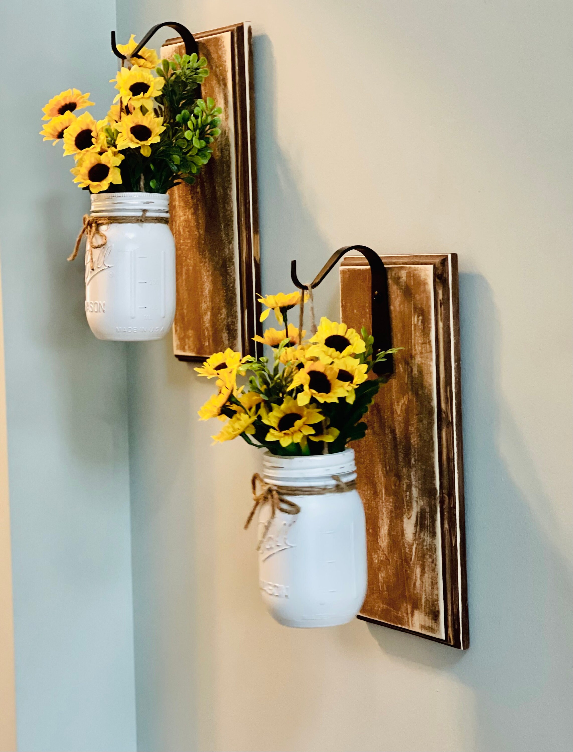 Rustic Sunflower Mason Jar Wall Sconce: Farmhouse Spring & Summer Decor for Country Home