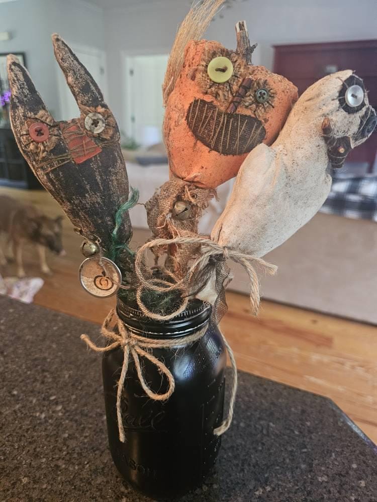 I love this centerpiece for my kitchen table. I ordered extra jars so I could switch them out at Halloween and Christmas. Now I just need to go to Hobby Lobby and get extra fall & Christmas flowers.