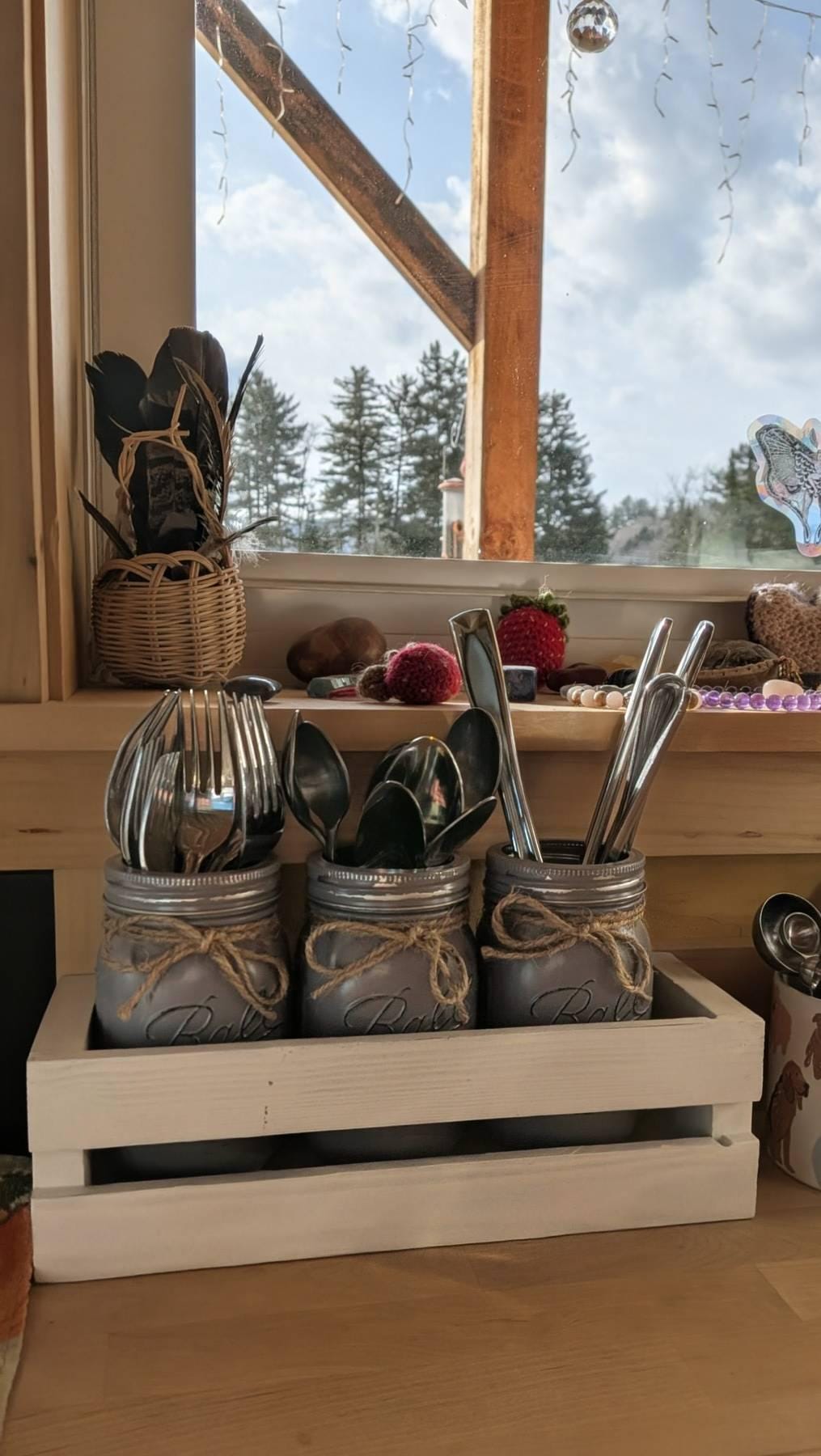 Modern Farmhouse Driftwood Utensil Crate for Beach House Decor and Party Organization