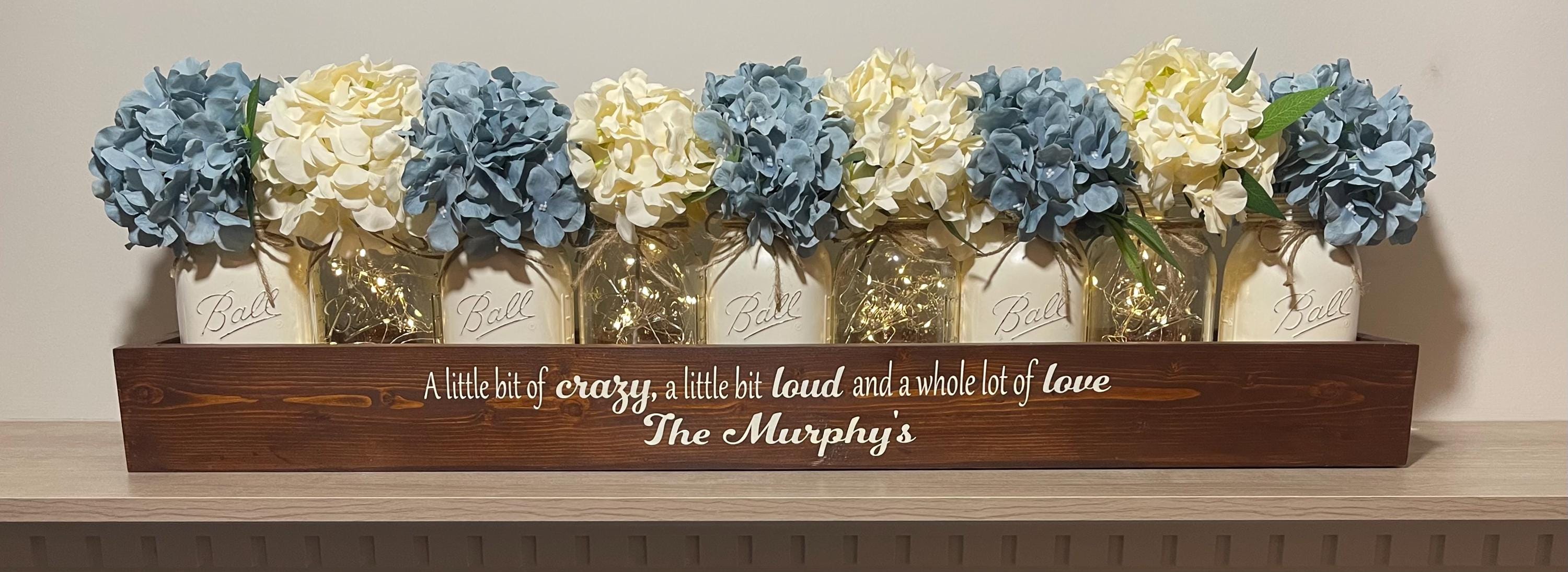 Hydrangea Floral Mason Jar Holiday Centerpiece for Dining Table or Personalized Family Decor, Extra Long Centerpiece