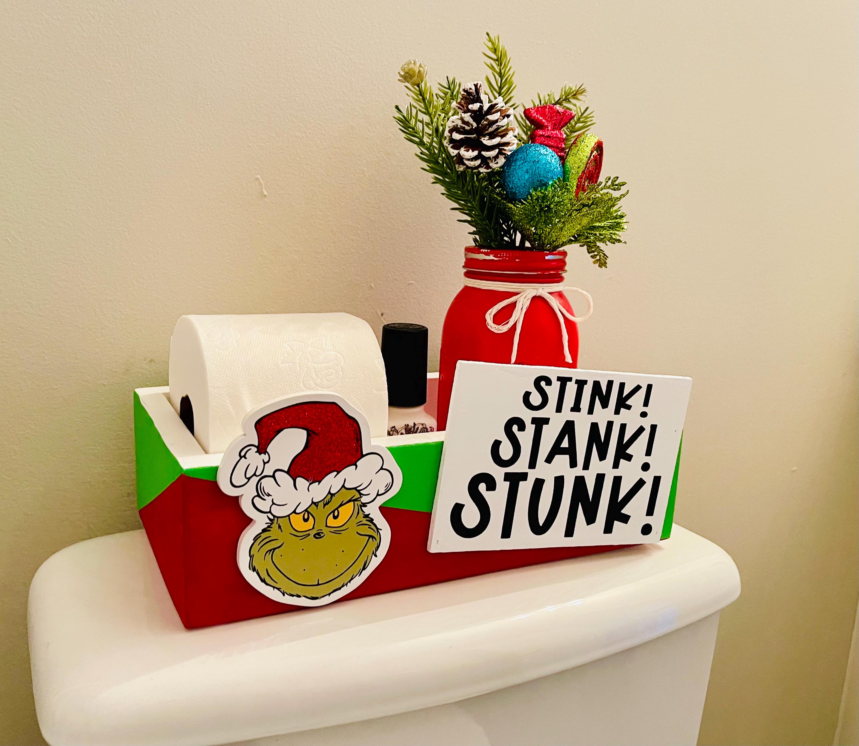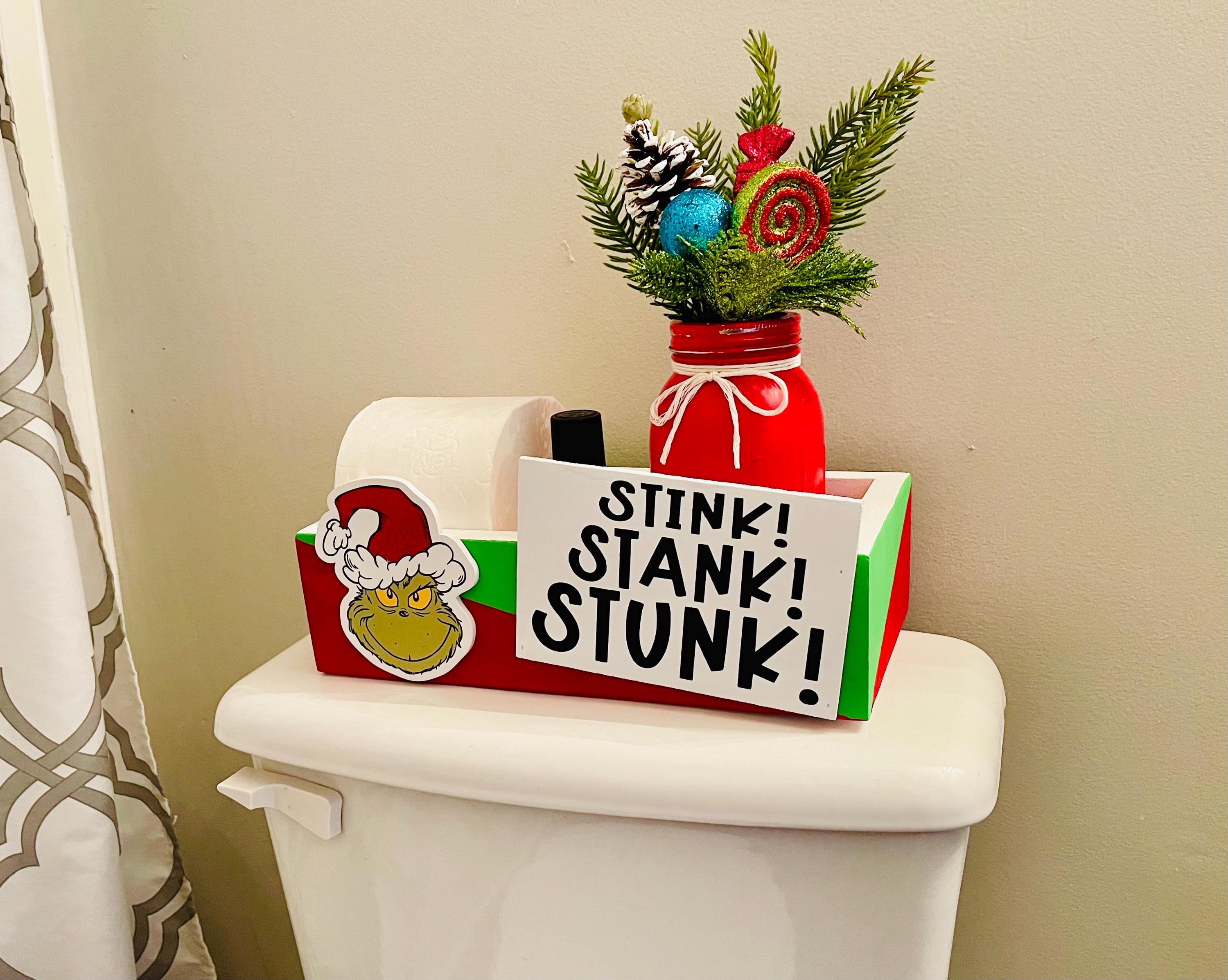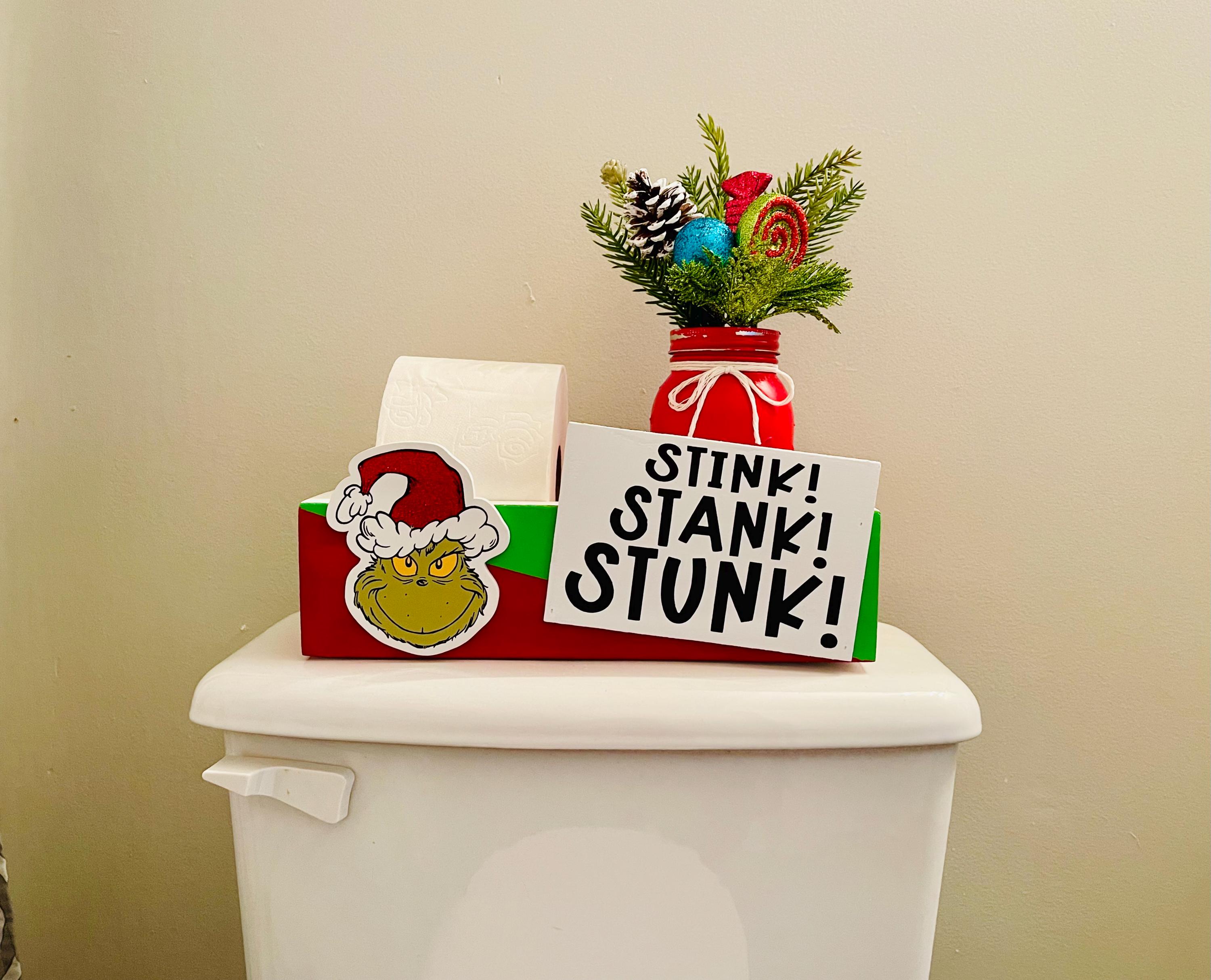 Funny Bathroom Toilet Paper Organizer, Grinch Decor, Christmas Decor, Stink Stank Stunk, Christmas Gift, Holiday Home Decor, Kid's Bath Fun