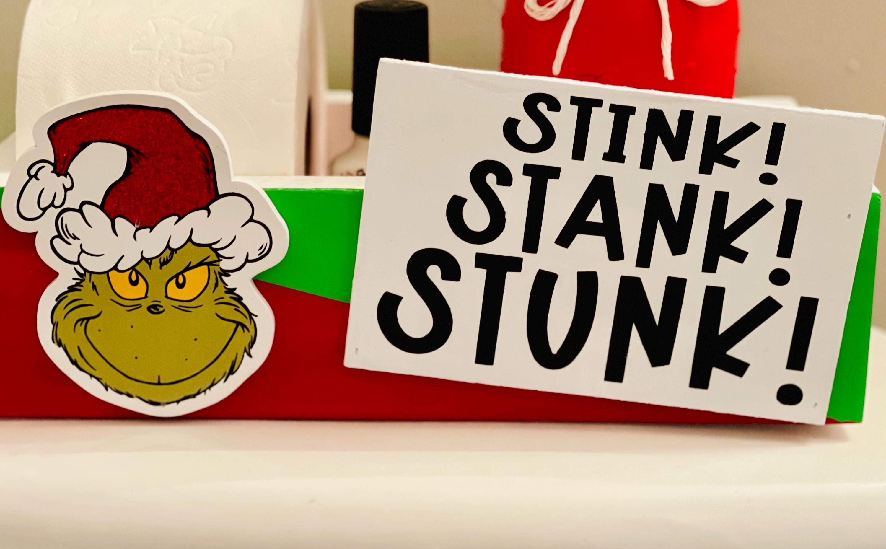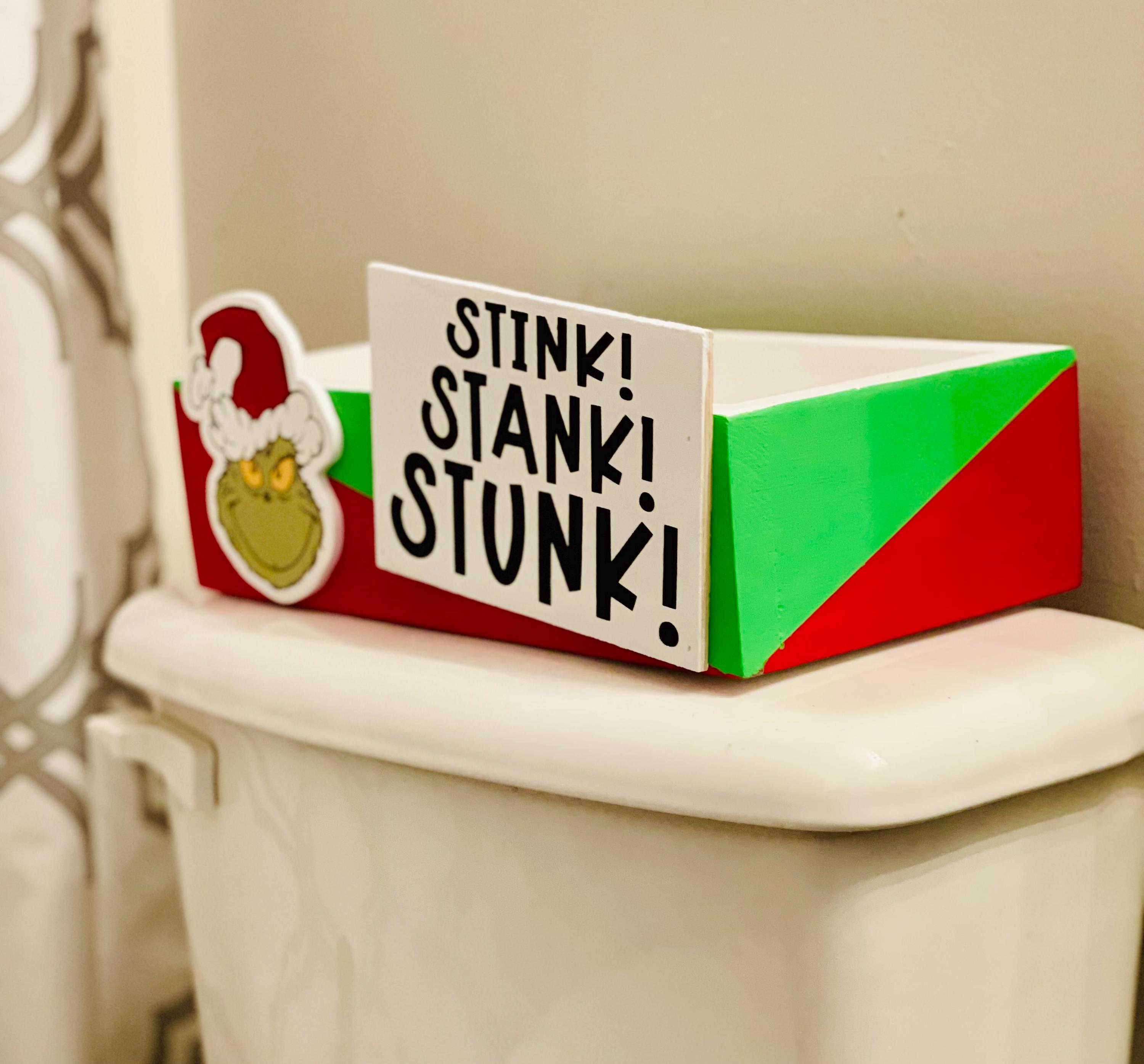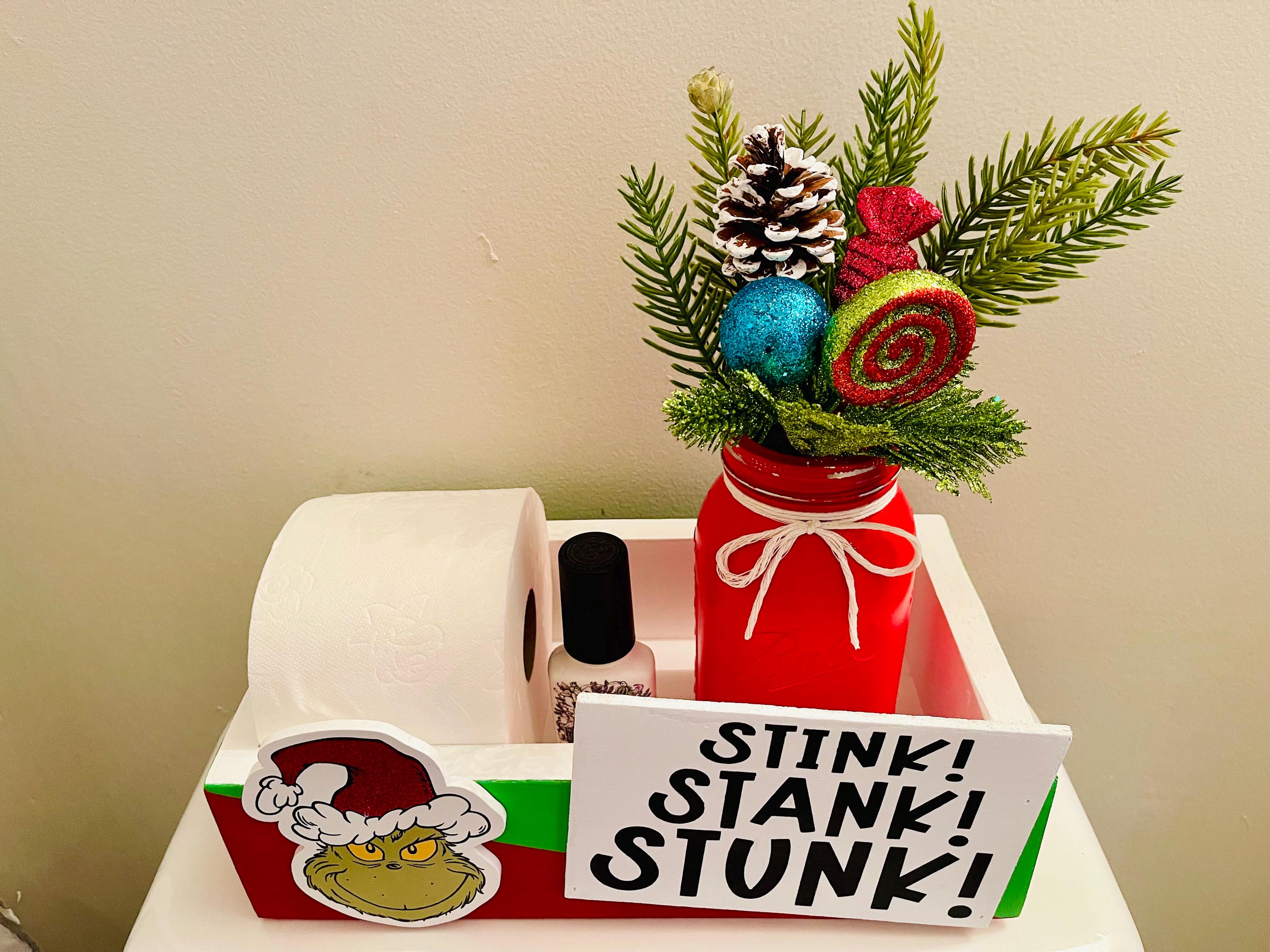 Funny Bathroom Toilet Paper Organizer, Grinch Decor, Christmas Decor, Stink Stank Stunk, Christmas Gift, Holiday Home Decor, Kid's Bath Fun