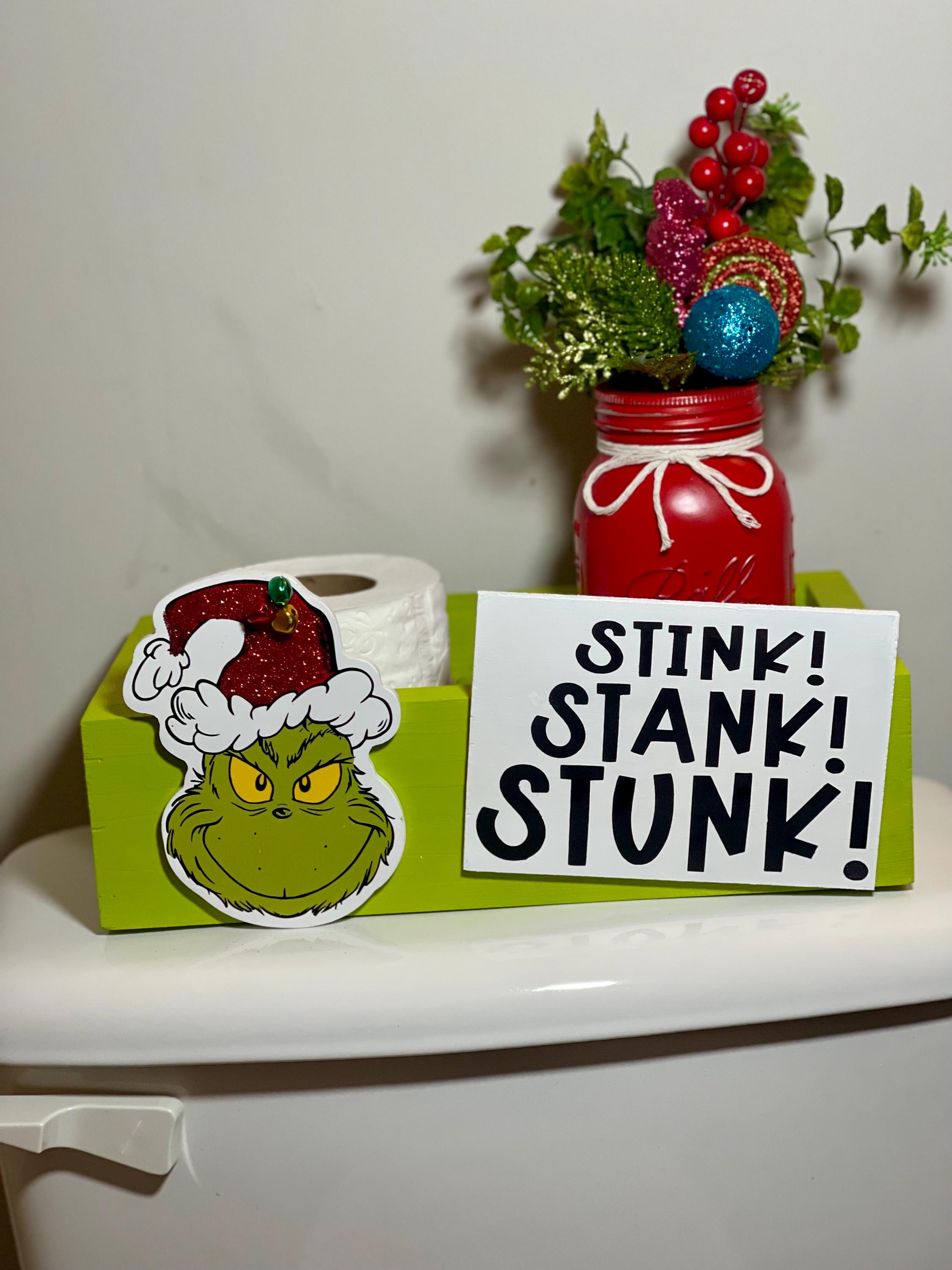 Funny Grinch Toilet Paper Organizer Christmas Bathroom Decor Stink Stank Stunk Holiday Gift Kids Bath Fun