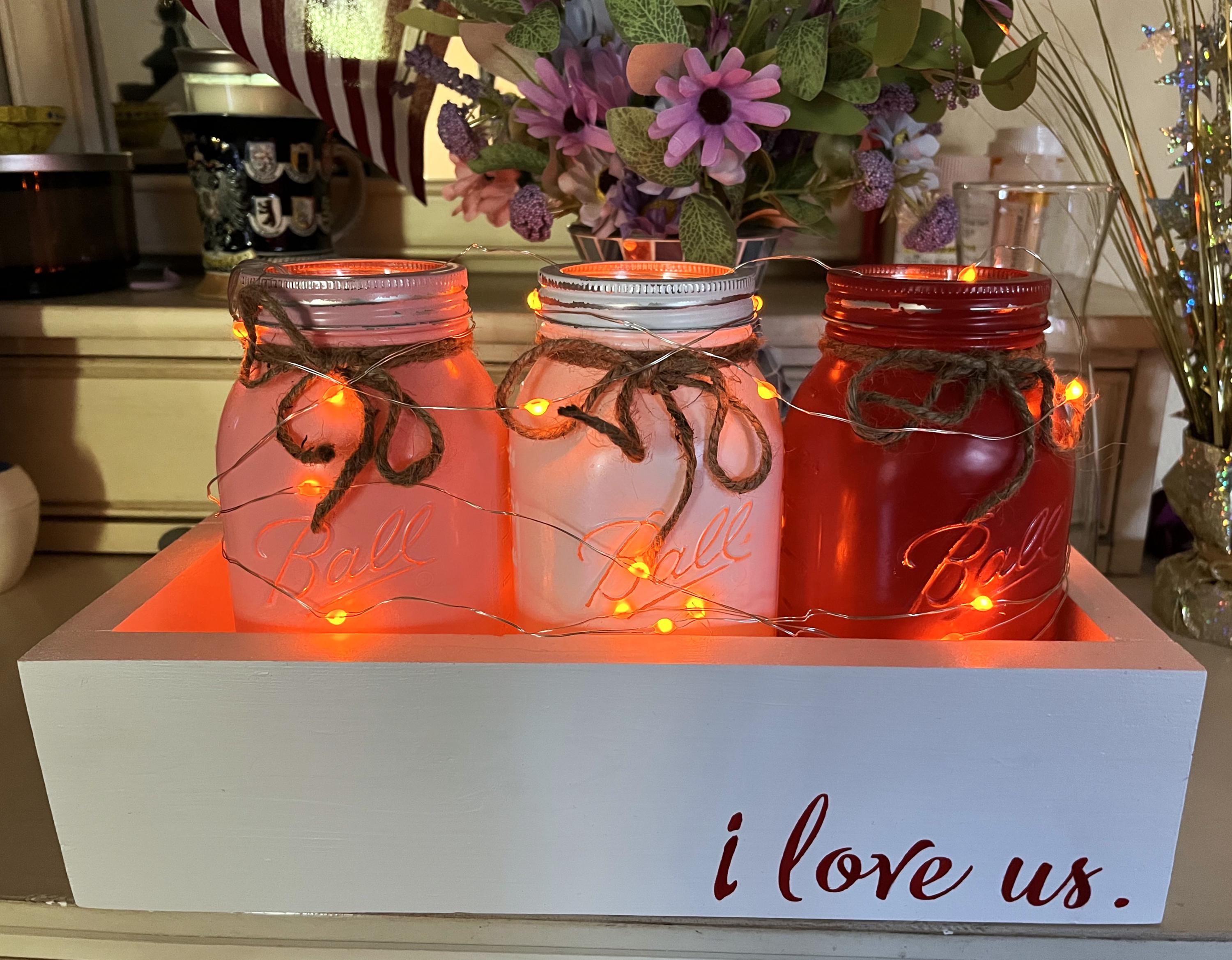 OMGoodnesss! The Valentine Jars & Box are absolutely ADORABLE!!! I LUV them! Thank you for the quick turnaround! My Daughter-in-law was so happy when she opened the gift!! Beautiful quality handmade custom order! I love the red "I Love Us" lettering! Such pretty Valentine gift!! I will be back! Thanks for the extra love you put into this custom order!! I appreciate your customer service!!