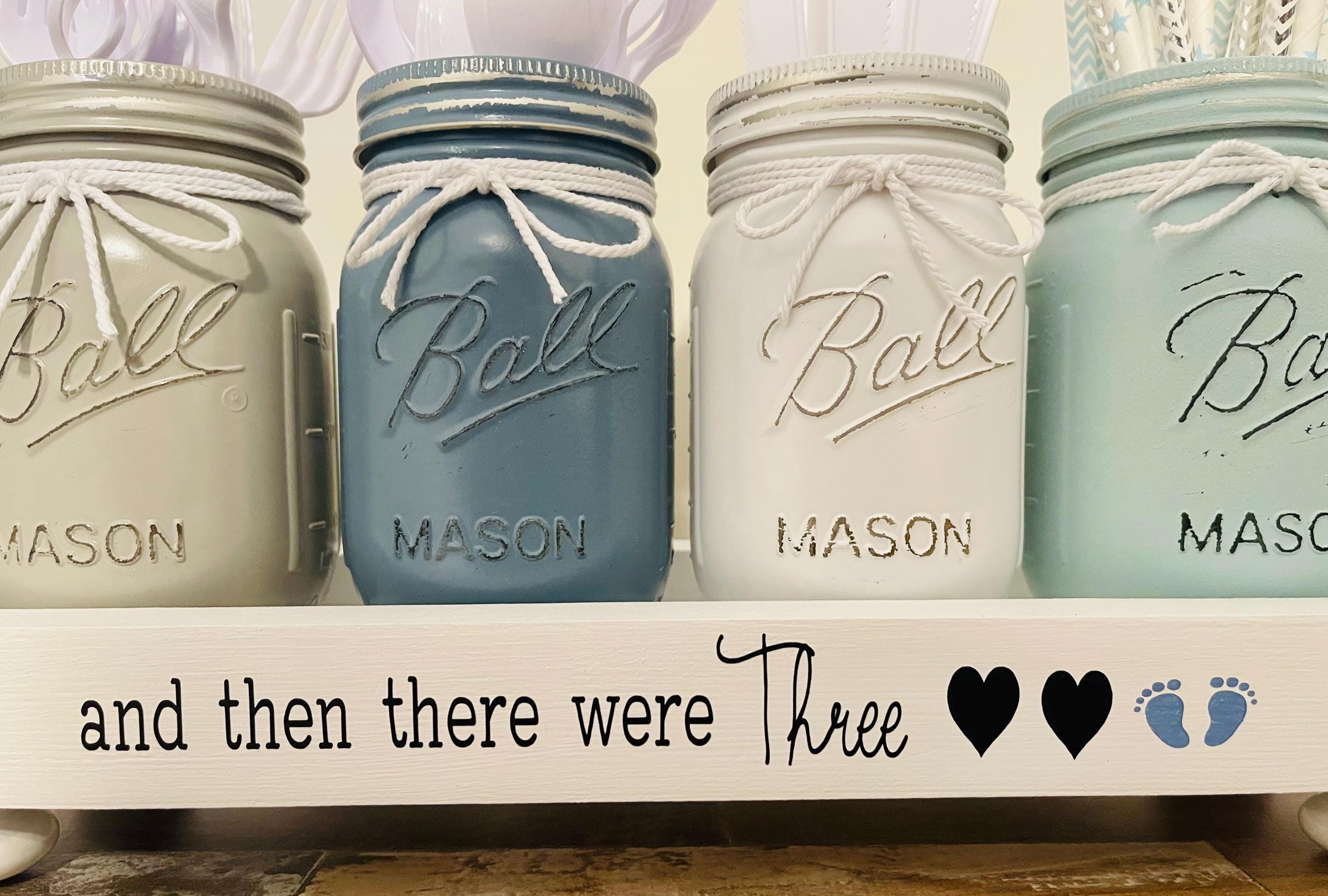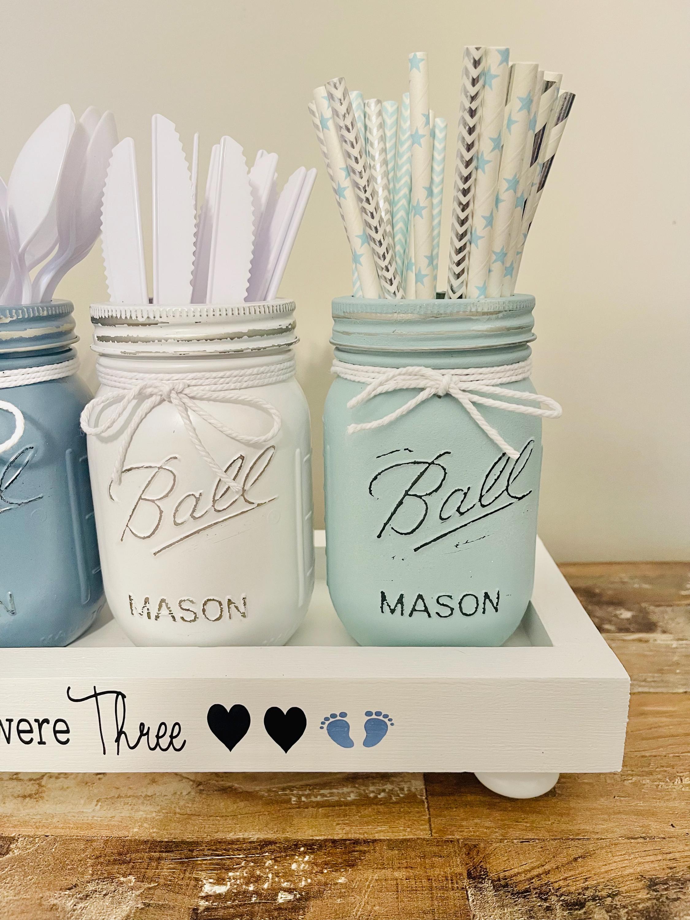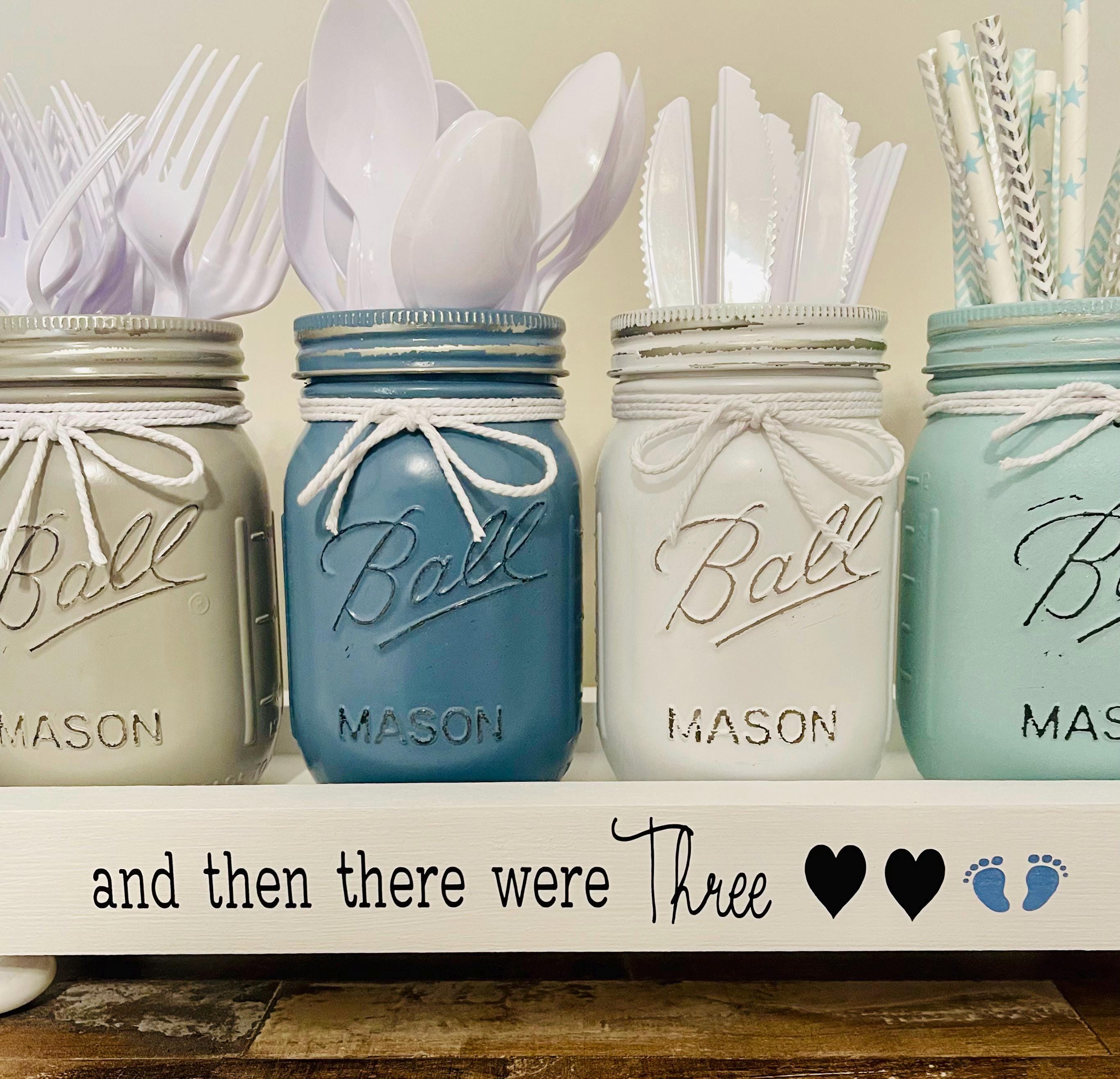 and then there were THREE!!! Sooo cute to place on the buffet table to celebrate their first born baby boy:) We can make the feet and jars pink if it is a girl...we can customize any colors you like.