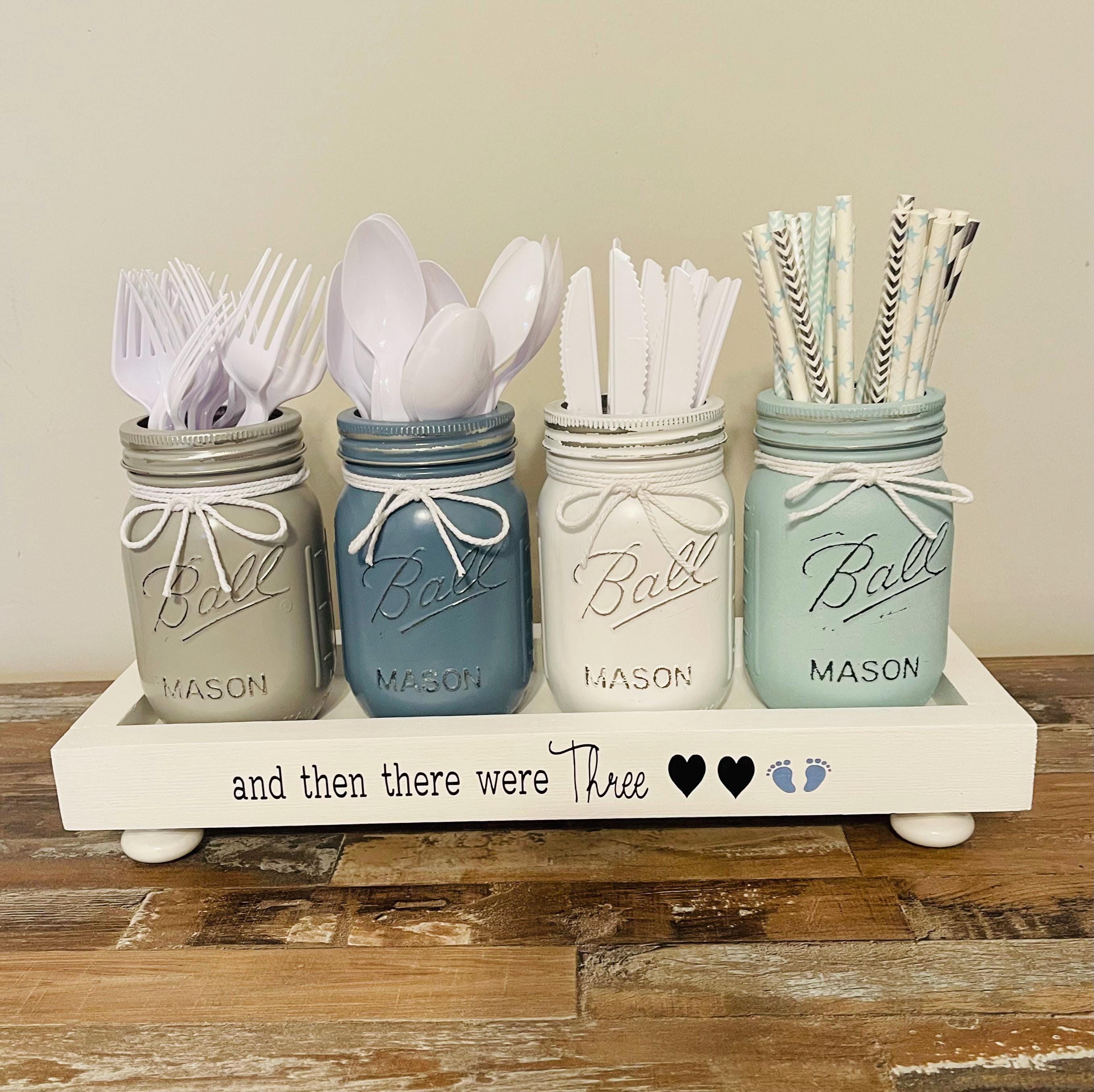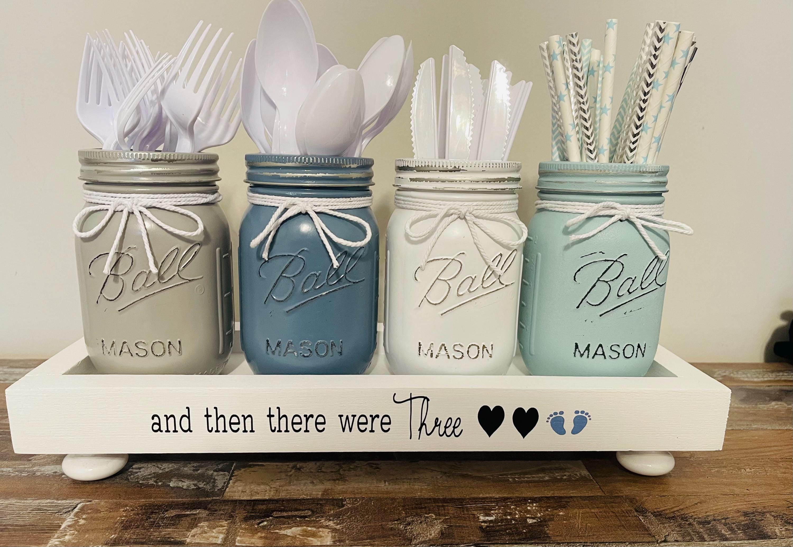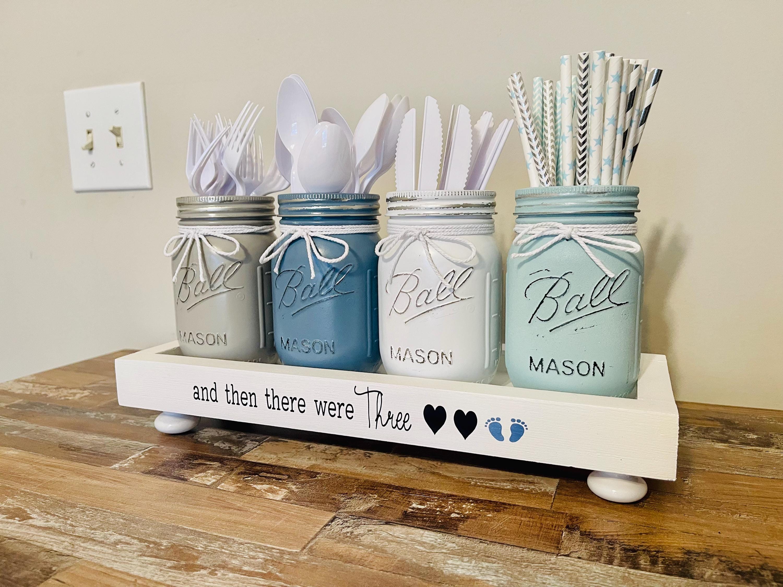 and then there were THREE!!! Sooo cute to place on the buffet table to celebrate their first born baby boy:) We can make the feet and jars pink if it is a girl...we can customize any colors you like.