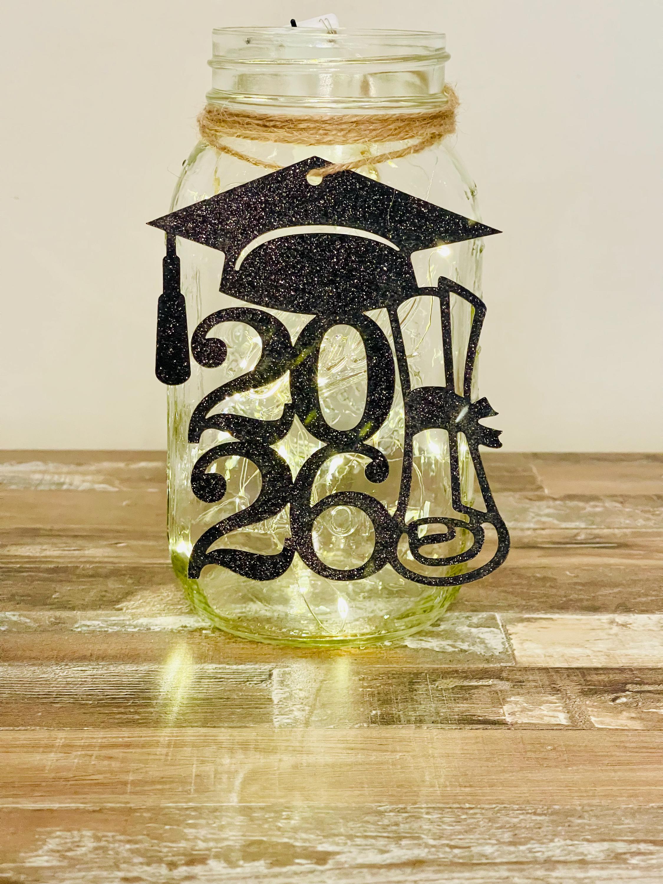 2026 Graduation Table Decoration, Class of 2026, Graduation Table Centerpiece, Graduation Mason Jar, Black Glitter Tags, Photo Grad Decor