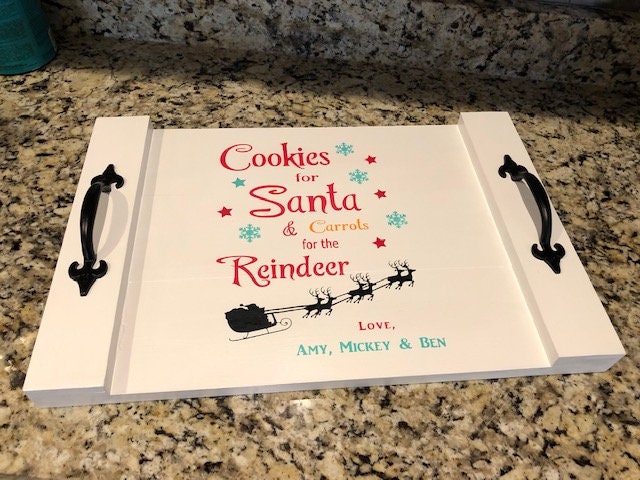 The tray is 20 x 14 with 2 beautiful rustic black handles to serve on....Santa will be THRILLED with his own special tray and he will surely know who left him those delicious cookies and milk and carrots for all the reindeer!