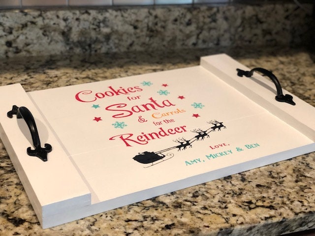 Personalized Santa Milk & Cookies Wooden Serving Tray Christmas Eve Holiday Decor Gift