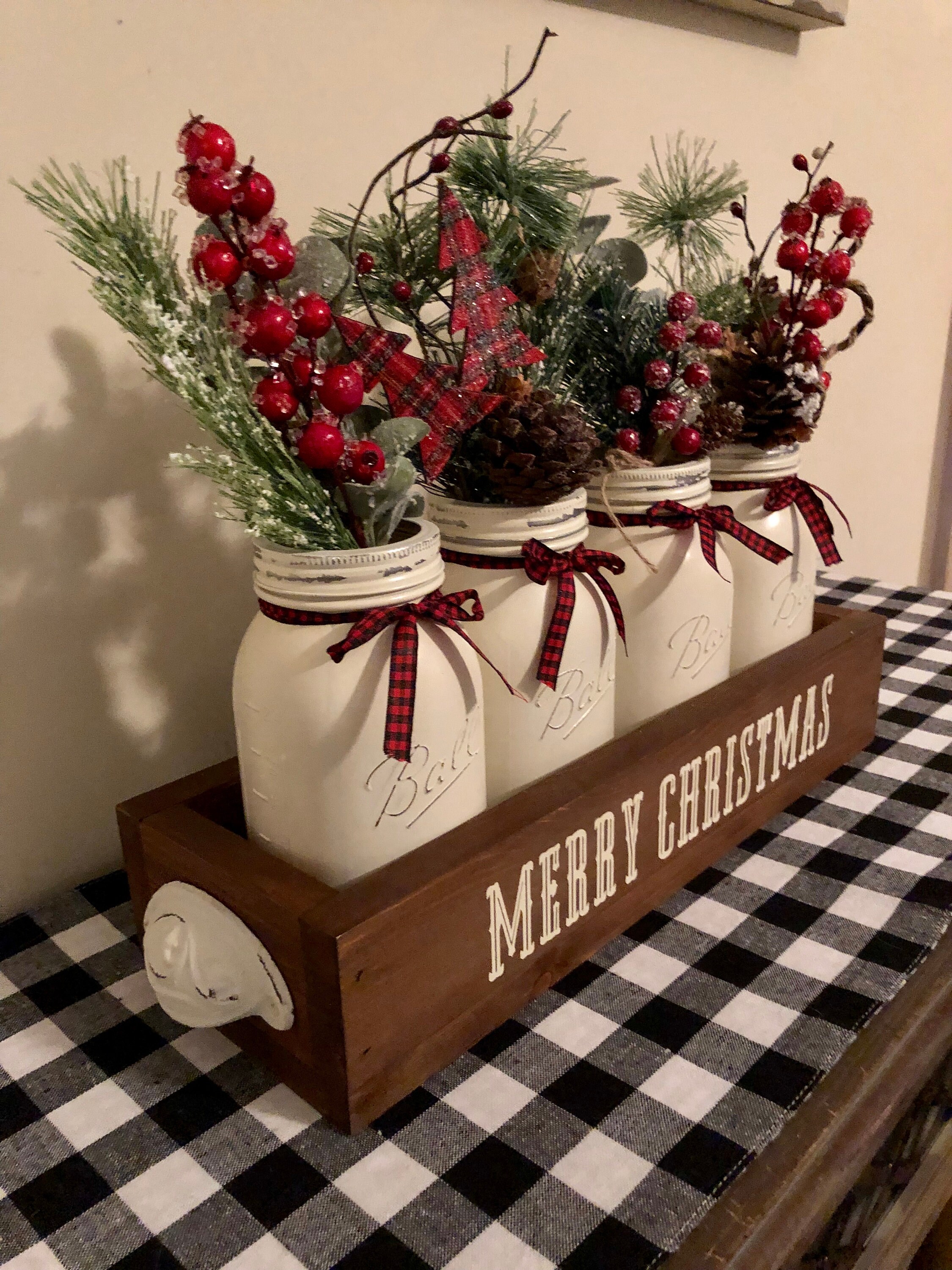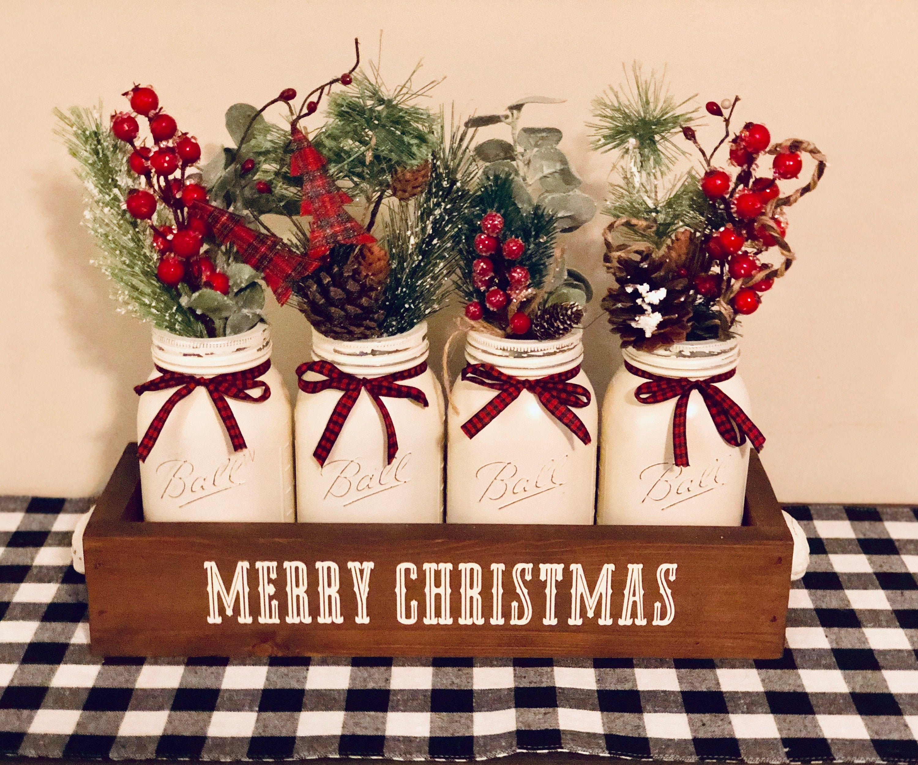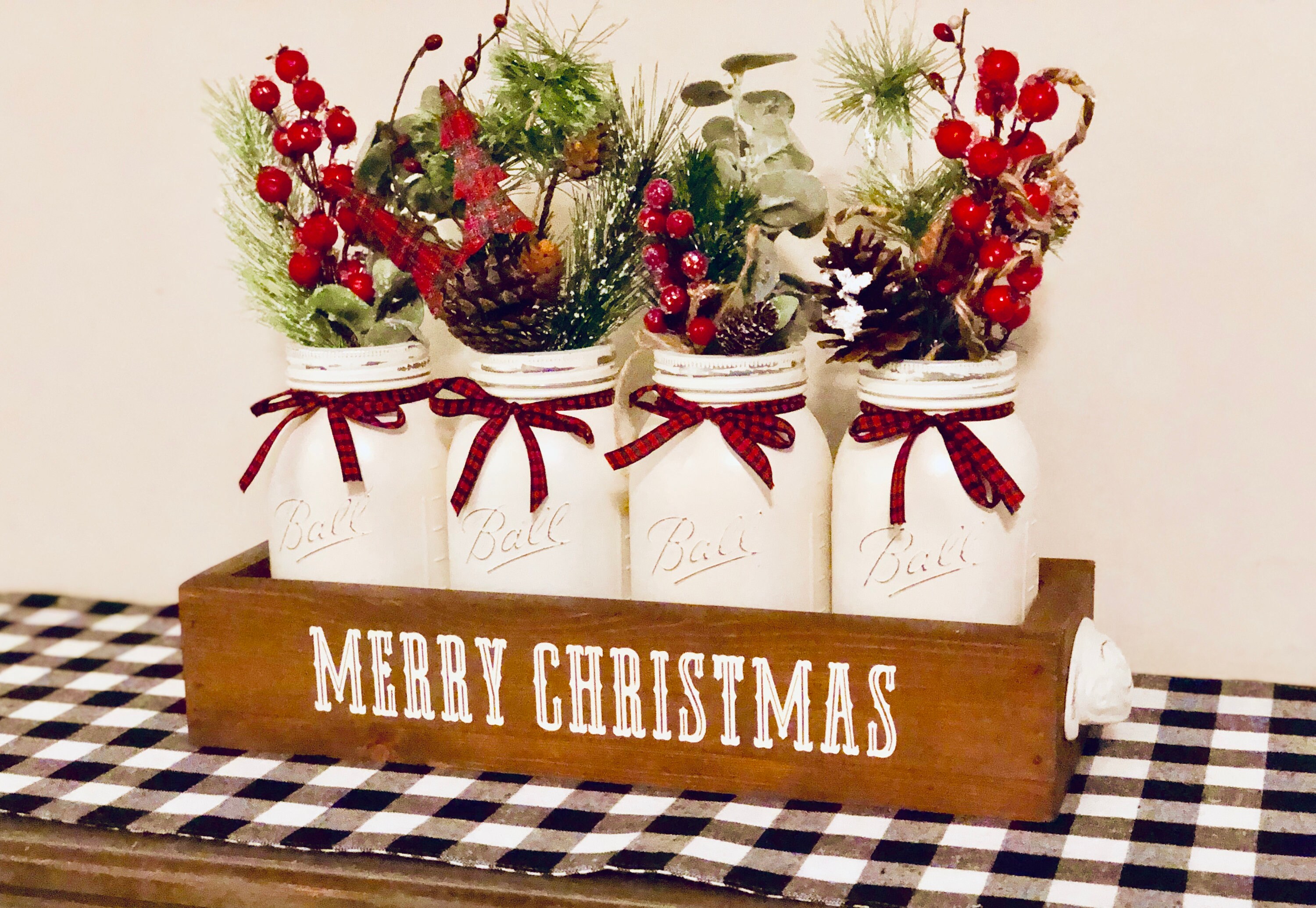 Farmhouse Christmas Centerpiece Vintage Holiday Fireplace Table Decor Rustic Floral Arrangement Mason Jar Gift