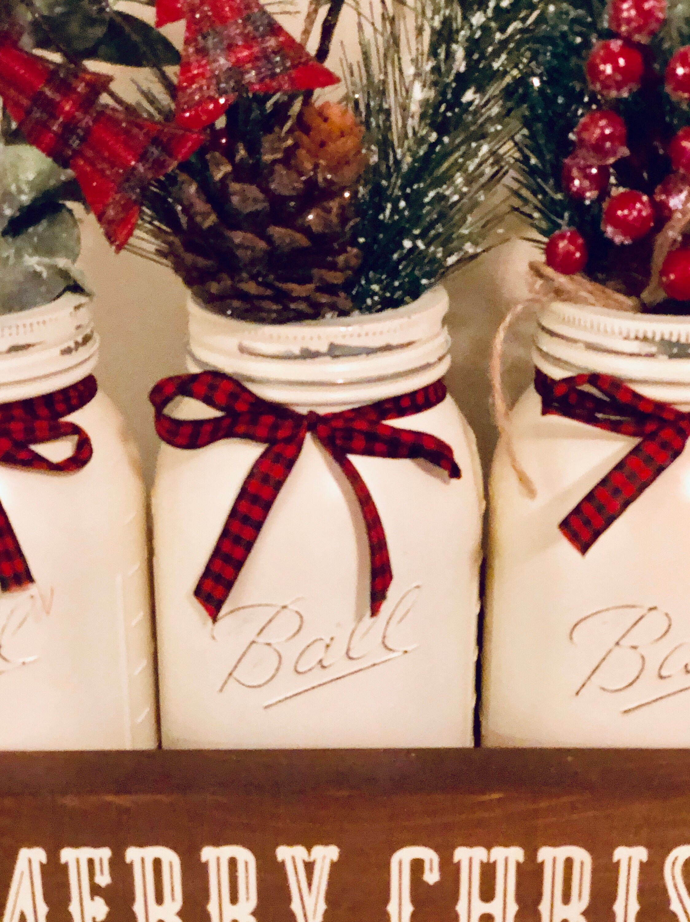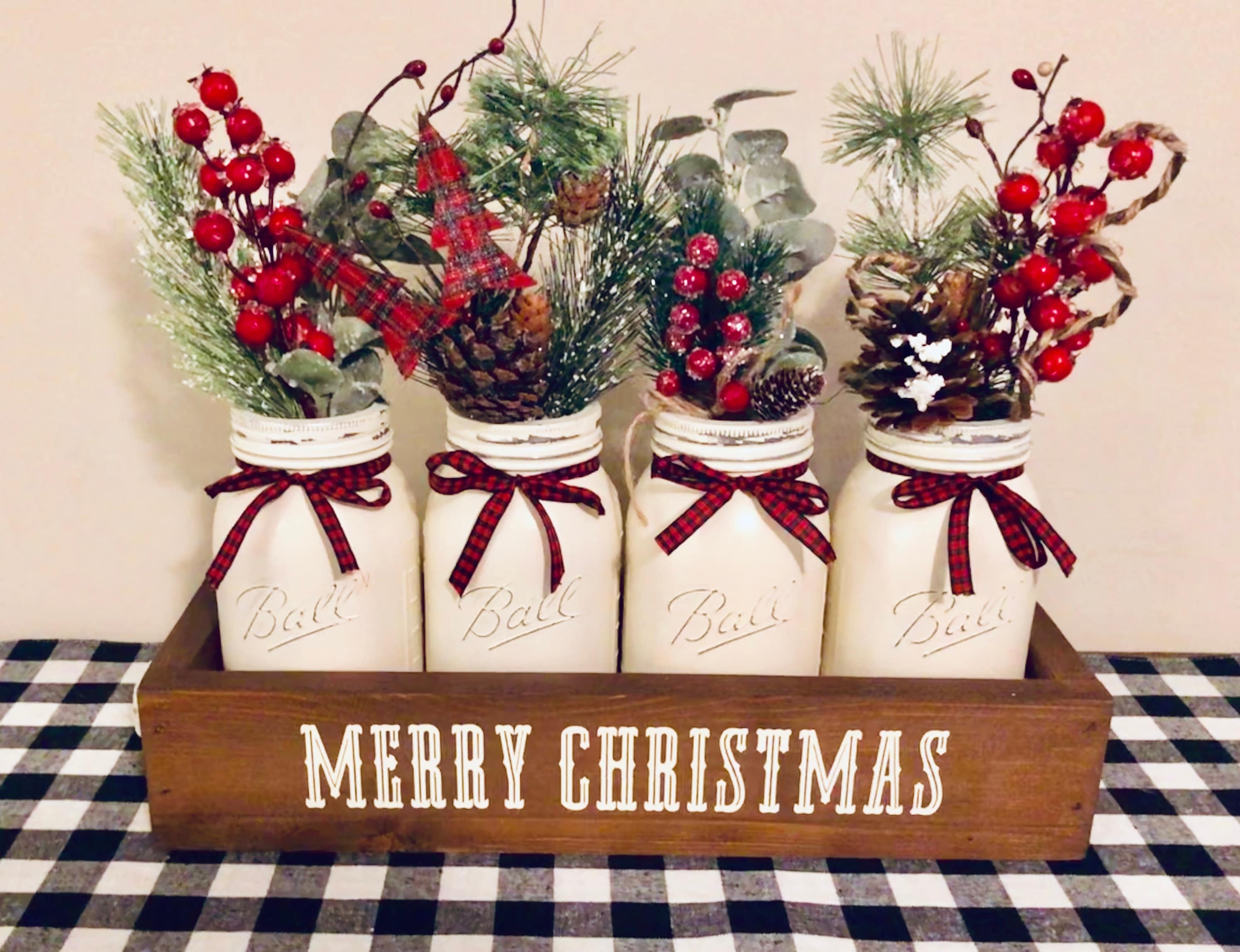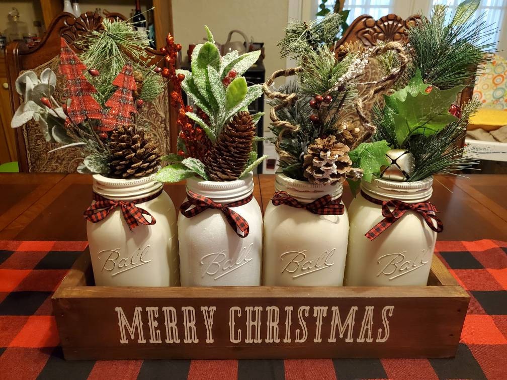 Farmhouse Christmas Centerpiece Vintage Holiday Fireplace Table Decor Rustic Floral Arrangement Mason Jar Gift