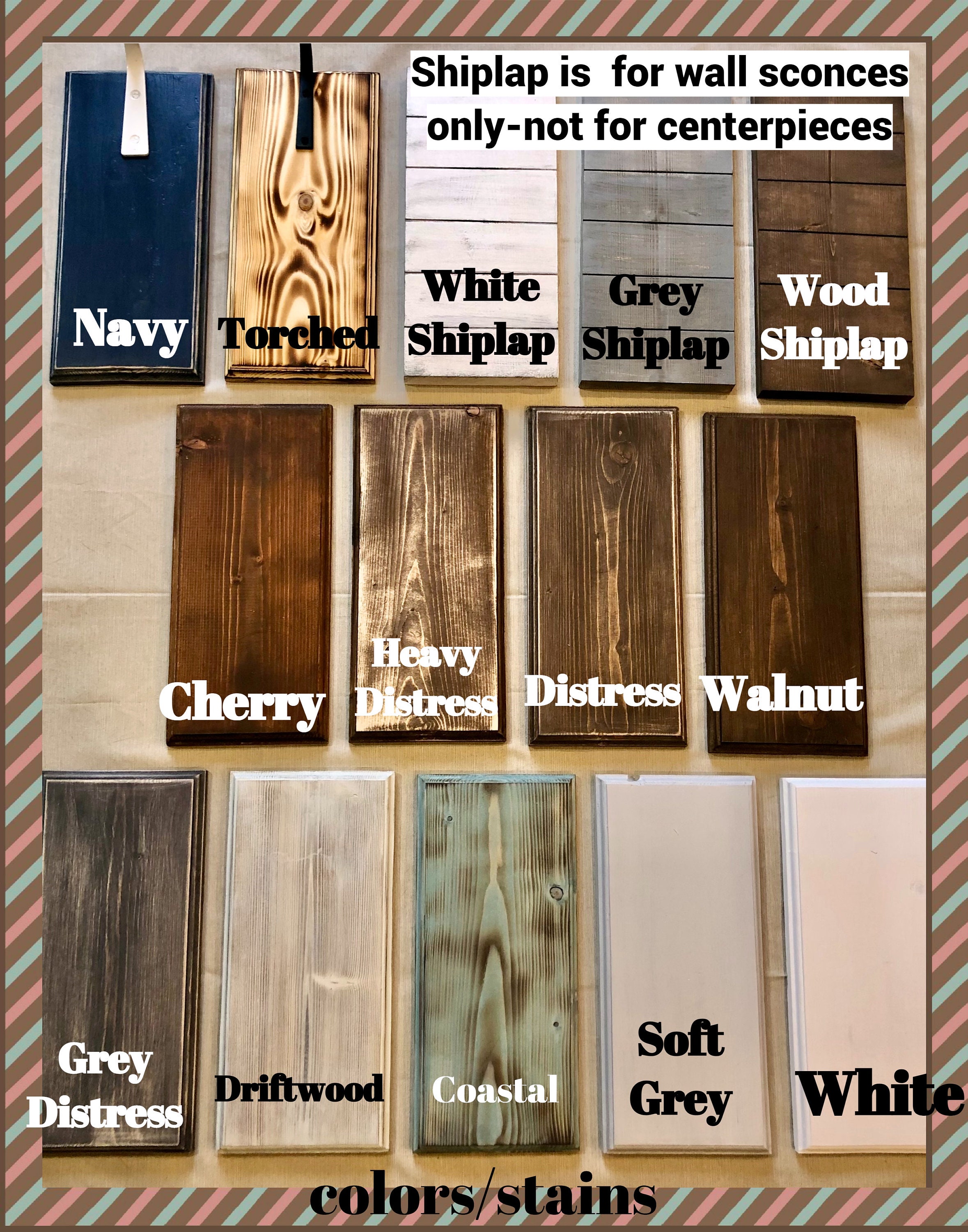 You can change the wood stain or jar colors when you order...maybe add some clear lit jars to give it some sparkle on your table. Just let me know any changes in the personalization box:)